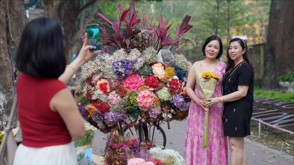 越南首都河内是一座爱花的城市,以自行车或摩托车为货架的“鲜花巴士”遍布大街小巷,成为这座城市独特的风景线。