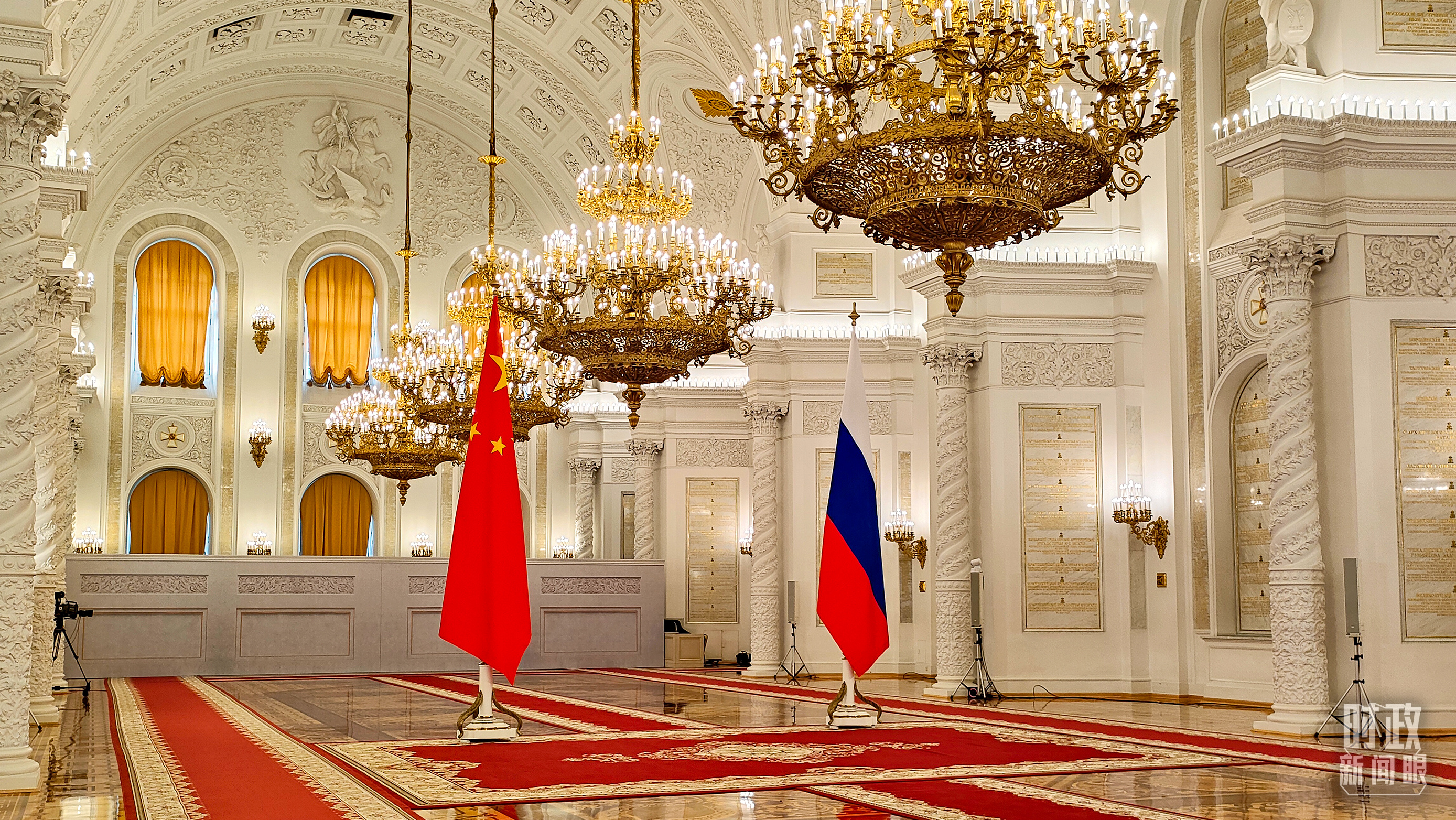 △习主席和普京总统举行大范围会谈的会场。(总台央视记者赵东辰拍摄)