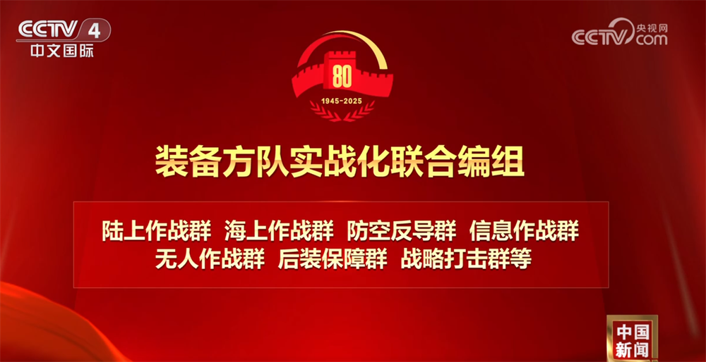 装备方队按照实战化联合编组,编陆上作战群、海上作战群、防空反导群、信息作战群、无人作战群、后装保障群和战略打击群等,不少是代表现代战争形态演变的最新装备,还有一些是“国之重器”,充分展示我军制胜现代战争的强大能力。