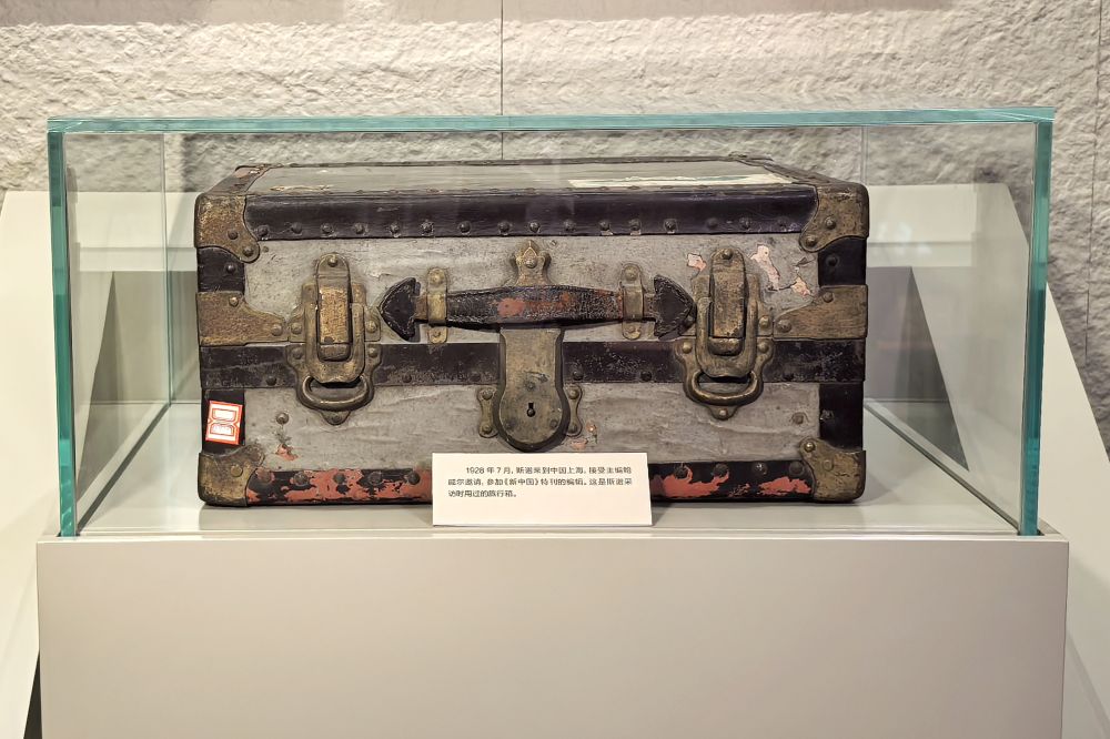 这是展览展出的斯诺采访时用过的旅行箱。新华社记者 杨湛菲 摄