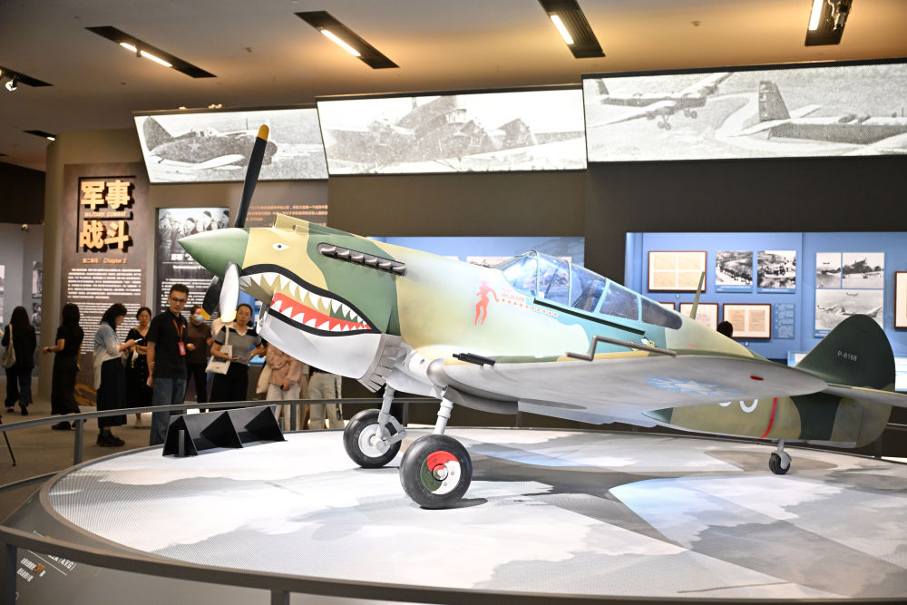 这是在中国国家博物馆展出的“飞虎队”P-40战斗机模型(9月7日摄)。新华社记者 金良快 摄