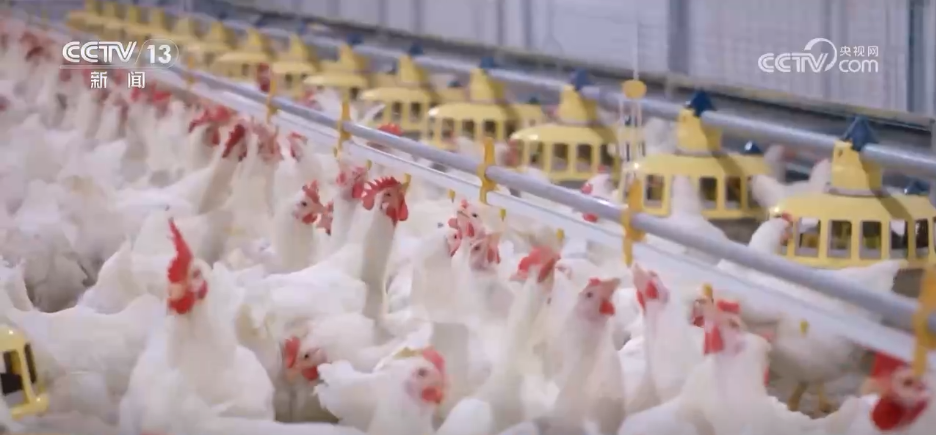 在位于福建南平光泽县的这个白羽肉鸡养殖基地,养殖场内智能喂料系统正实时感应料盘余量,并自动打料传输,自动饮水系统保证鸡随时喝到干净卫生的水,分布四周的传感器自动采集养殖场的温度、湿度和空气质量等指标。