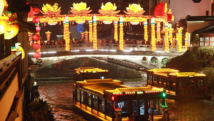 2月15日,游客在南京夫子庙景区游玩,乐享春节假期。
